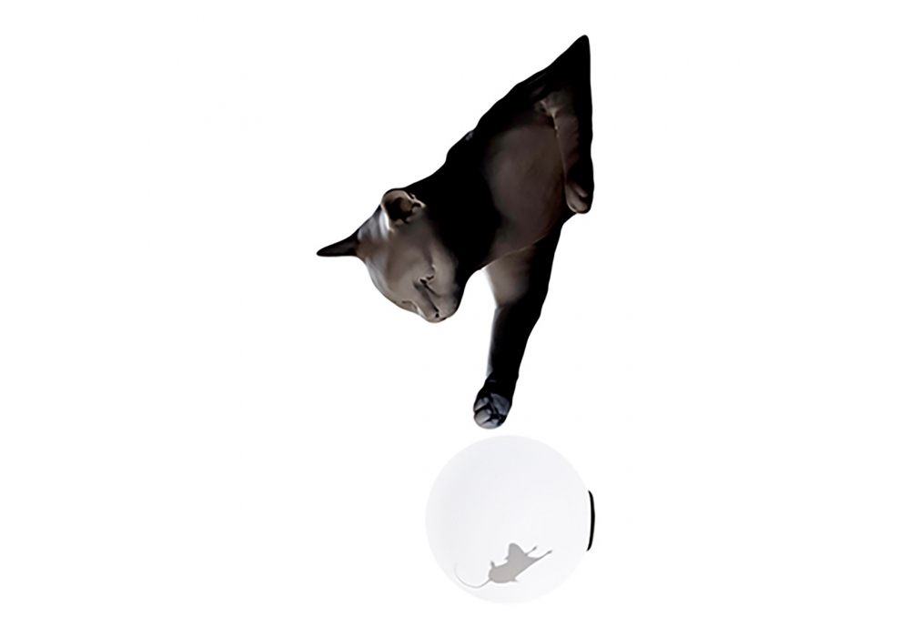 Maoo von Matteo Ugolini für Karman entworfen, ist eine Wandleuchte aus satiniertem weißem Glas. Möglichkeit, eine katzenförmige Skulptur mit aufgedrucktem Schatten auf dem Lampenschirm hinzuzufügen. Die Skulptur ist in zwei Ausführungen erhältlich.