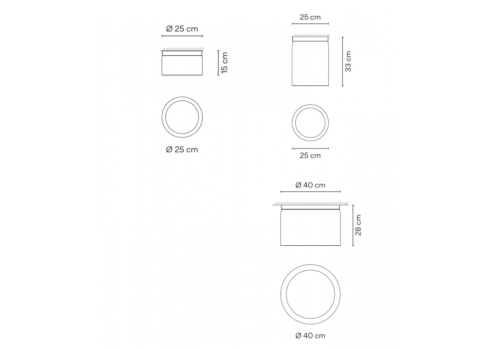 | Abmessungen | Ø 25 x H 15 cm; Ø 25 x H 33 cm; Ø 40 x H 28 cm. |