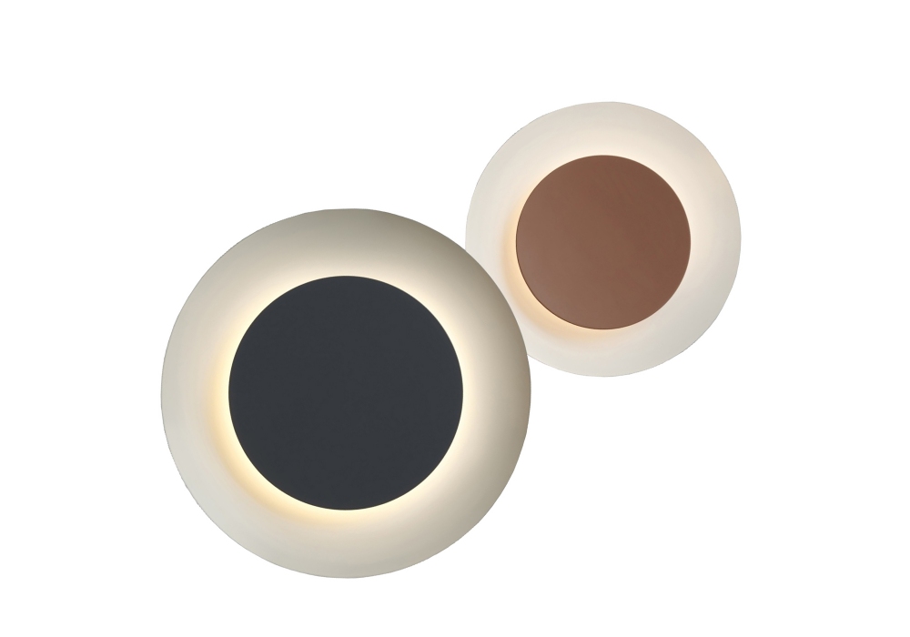 Puck Wall Art 5487 von Jordi Vilardell für Vibia entworfen ist eine runde Wandleuchte mit Aluminium-Wandhalterung. Die Lampenschirme bestehen aus ABS mit einem Stahlrand und verfügen über Diffusoren aus Polycarbonat, die die LED-Lichtquellen abschirmen. Puck Wall Art 5487 ist in verschiedenen Ausführungen, Farbtönen und Lichtdimmbarkeitsversionen erhältlich.