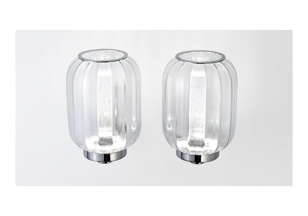Lanterna von Tulczinsky für Reflex Angelo entworfen, ist eine Wandleuchte aus Kunstglas in transparent, Aquamarin und Strohgelb. Interner Glasdiffusor mit Rugiada-Finish und Glasabdeckung mit Magnet. Halterung aus poliertem Chrommetall und LED-Beleuchtungssystem mit Strahler und Streifen.