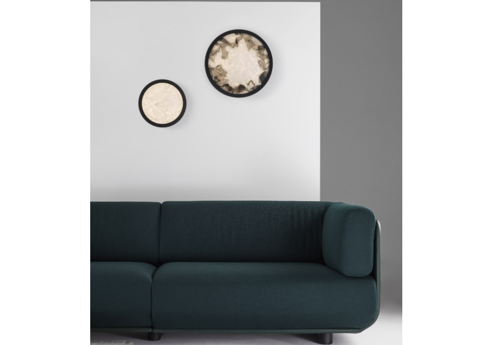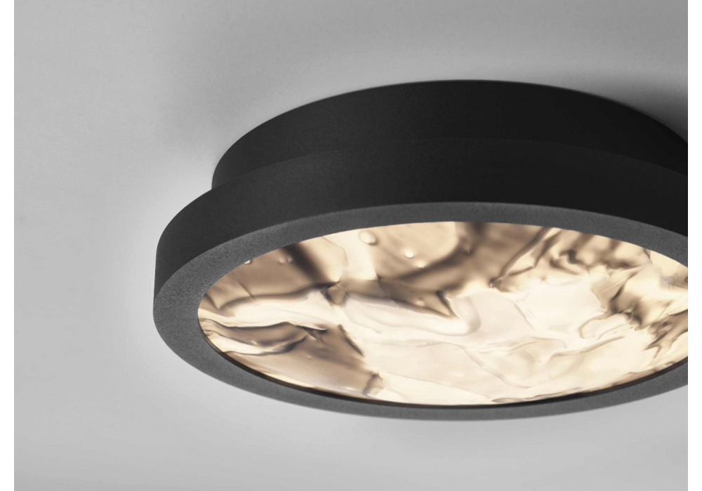Convex von Boris Klimek für Brokis entworfen, ist eine Wandleuchte / Deckenleuchte aus Glas mit glänzender oder säuregeätzter Oberfläche. Der Leuchtenkörper besteht aus mattschwarz pulverbeschichtetem Metall mit passender Rosette. Das Textilkabel ist schwarz.