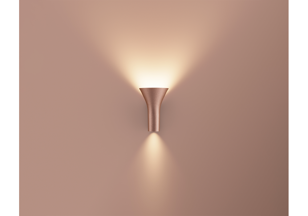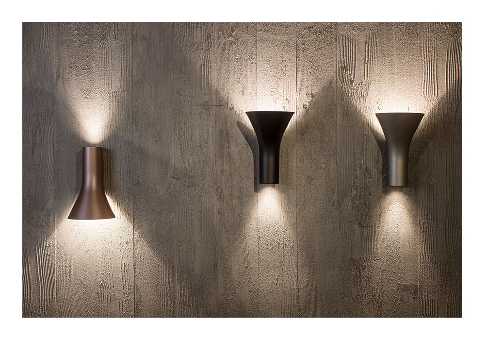 Torche von Dordoni Studio für Foscarini entworfen, ist eine Wandleuchte aus Metall mit einer weichen, seidigen und völlig undurchsichtigen Oberfläche. Sie hat eine kompakte und diskrete Linie. Die Besonderheit des Kegels ermöglicht es, die Lampe im oberen Teil teilweise von der Wand zu lösen, sodass sich das Licht an der Wand ausbreiten kann.