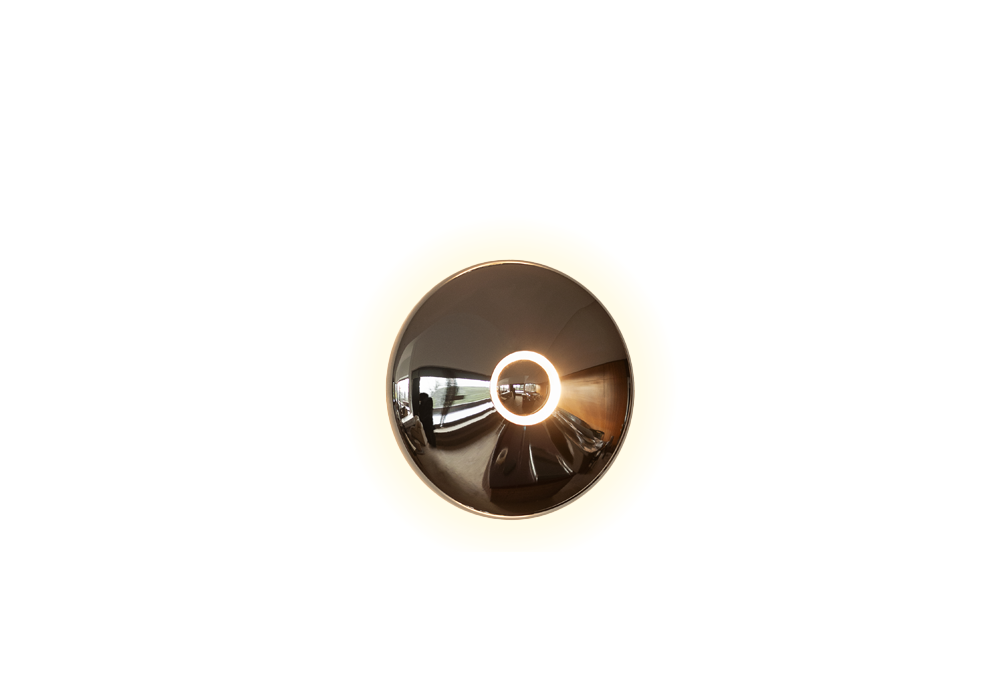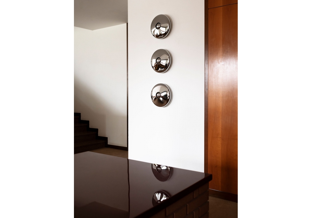 Andrea von der Nuova Group für Tacchini entworfen, ist eine Wandleuchte mit einer Struktur aus poliertem Chromstahl.