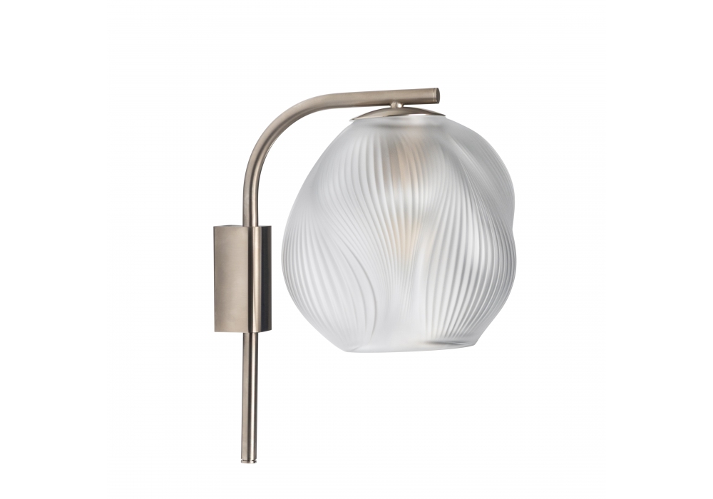 Alizé von René Lalique für Lalique entworfen, ist eine Wandleuchte mit einem transparenten Kristalldiffusor und einer satinierten Metallstruktur.