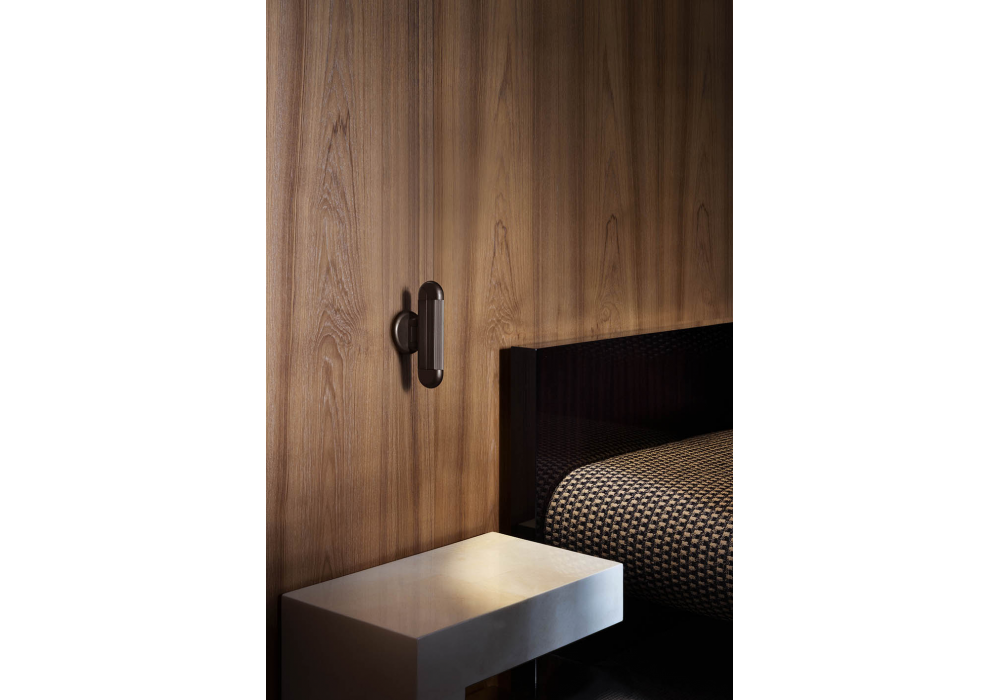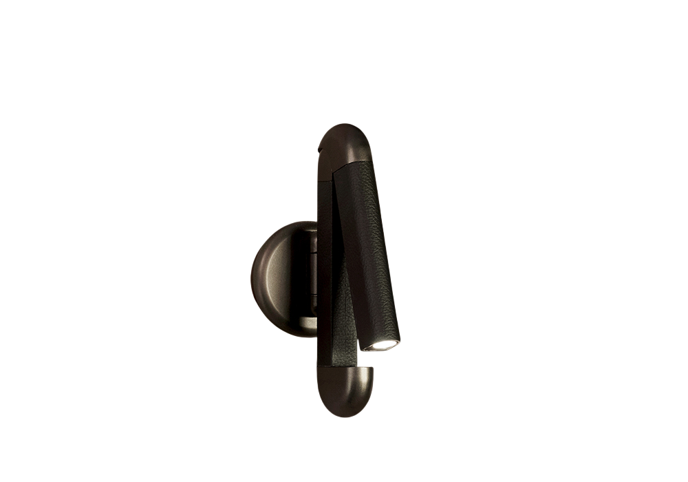 Picchio von Alessandro Munge für Contardi entworfen, ist eine Wandleuchte mit LED-Modul und integriertem oder externem Treiber. Ihr Gestell besteht aus poliertem Aluminium oder gebürsteter Bronze, optional mit Lederdetails in Cognac (bei Aluminium) oder Kaffeebraun (bei Bronze). Auch ohne Ledereinsätze erhältlich.
