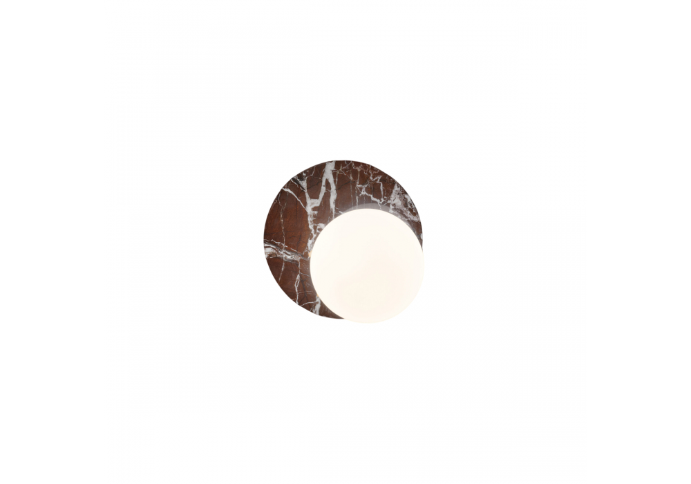 Emma von Contardi Studio entworfen, ist eine Wandleuchte mit einem zylindrischen Korpus aus Marmor. Der kugelförmige Diffusor besteht aus opalweißem Glas und beherbergt eine G9-LED-Lichtquelle.
