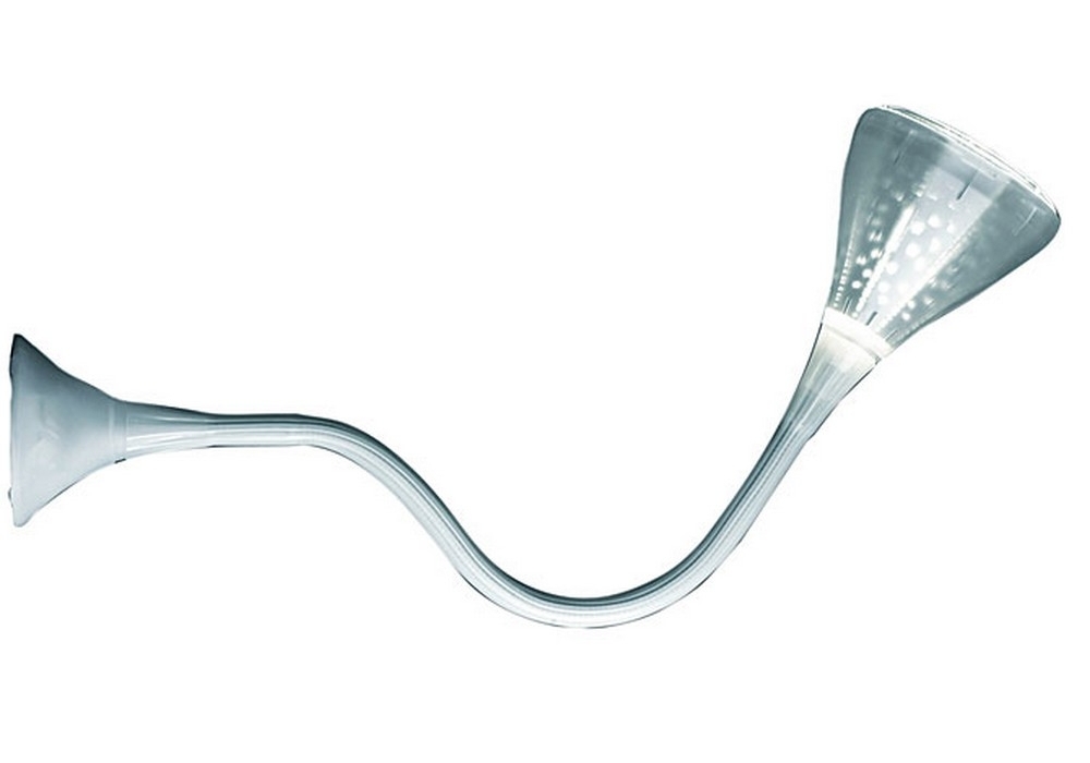 Pipe LED von Herzog & de Meuron für Artemide entworfen, ist eine Wand- oder Deckenleuchte mit einer flexiblen Struktur aus lackiertem Stahl, die mit einer Platin-Silikonhülle überzogen ist. Rosette und Diffusor bestehen aus transparent lackiertem Polycarbonat. Bei der Lichtquelle handelt es sich um einen dimmbaren LED-Typ mit unterschiedlichen Abstufungen der Lichtemission.