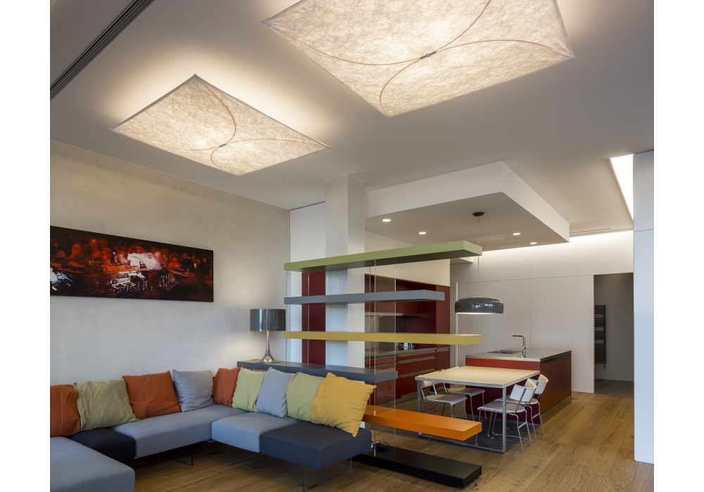 Ariette von Tobia Scarpa für Flos entworfen, ist eine Wand- oder Deckenleuchte mit diffusem Licht. Diffusor aus synthetischem Gewebe. Wandhalterung aus Polyamid mit 30% Glasfaser. Fernverstellbar (Dimmer nicht enthalten). Leuchtmittel nicht enthalten.