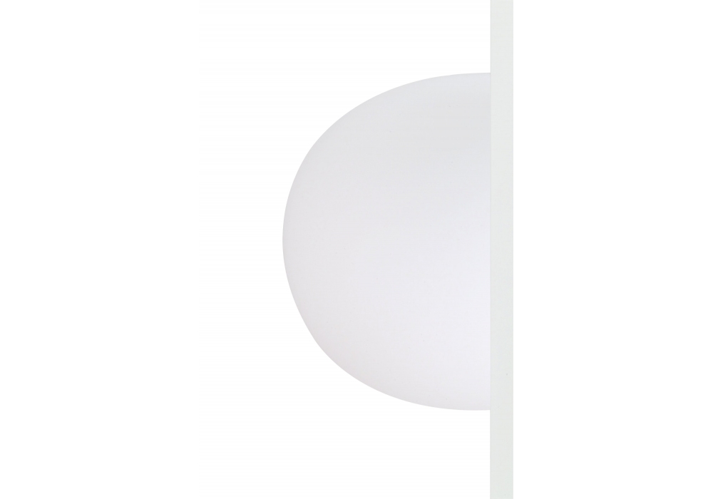 Glo-Ball W von Jasper Morrison für Flos entworfen, ist eine Wandleuchte mit diffusem Licht. Der Diffusor besteht aus mundgeblasenem, ummanteltem Opalglas mit säuregeätzter Oberfläche. Die Wandhalterung besteht aus gepresstem und verzinktem Stahl. Fernverstellbar (Dimmer nicht im Lieferumfang enthalten). Leuchtmittel nicht im Lieferumfang enthalten.
