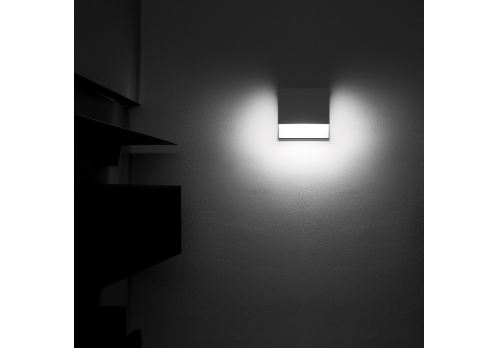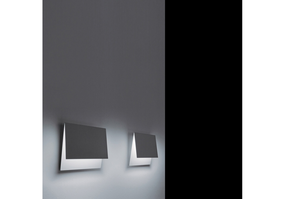 Folder von 967 Design für Davide Groppi entworfen, ist eine viereckige Wandleuchte, die vollständig aus mattweiß lackiertem Metall besteht. Die gewählte Lichtquelle ist ein dimmbarer LED-Typ von Dali in verschiedenen Lichtschattierungen.