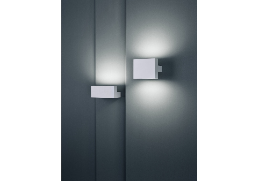 Tight Light von Piero Lissoni für Flos entworfen, ist eine Wandleuchte mit direktem/indirektem Licht. Leuchtenkörper aus lackiertem, extrudiertem Aluminium. Seitliche Friese aus Aluminiumdruckguss, numerisch um 45° bearbeitet, um eine perfekte Verbindung mit dem Leuchtenkörper zu gewährleisten. Diffusoren aus spritzgegossenem PMMA mit fotogravierter Oberfläche. Spritzgegossene Wandhalterung. Im Leuchtenkörper integriertes Mehrspannungsnetzteil. Nicht einstellbare Dimmfunktion. LED-Leuchtmittel enthalten.