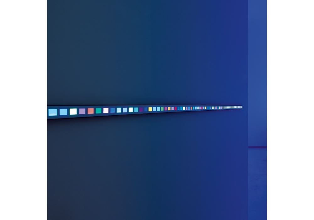 Film entworfen und hergestellt von Davide Groppi & Alessandra Dallagiovanna, ist eine modulare Wandleuchte, die vollständig aus der Kombination von Polycarbonat und mattschwarz lackiertem Metall besteht. Die gewählte Lichtquelle ist vom Typ LED, der von einem Transformator mit Stecker gespeist wird.
