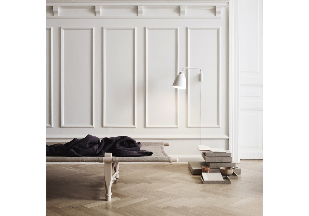 Caravaggio™ Read von Cecilie Manz für Fritz Hansen entworfen, ist eine Wandleuchte mit Diffusor aus matt lackiertem Aluminium oder Opalglas. Der flexible Schlauch ermöglicht es Ihnen, den Lampenschirm zu neigen und das Licht zu lenken. Ausgestattet mit einem dreistufigen Touch-Control-Dimmer, um die Intensität des Lichts zu regulieren. Verfügbar in mehreren Ausführungen.