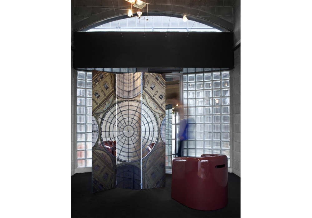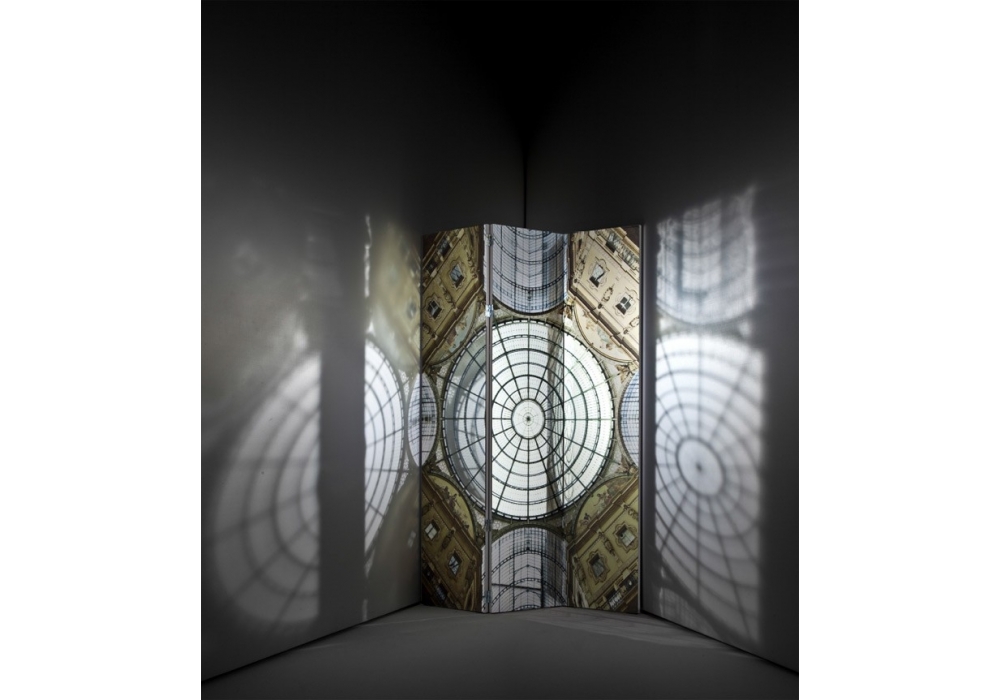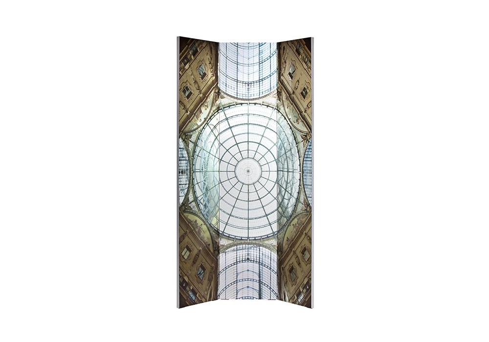 Miro von Francesco Bolis für Driade entworfen, ist ein Paravent Structure bestehend aus drei Paneelen aus MDF, die auf einer Seite mit 5 mm extra klarem Silberspiegel mit Digitaldruck und auf der anderen Seite mit schwarzem Laminat bedeckt sind. Nur für den internen Gebrauch.