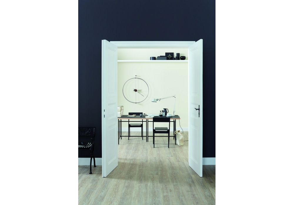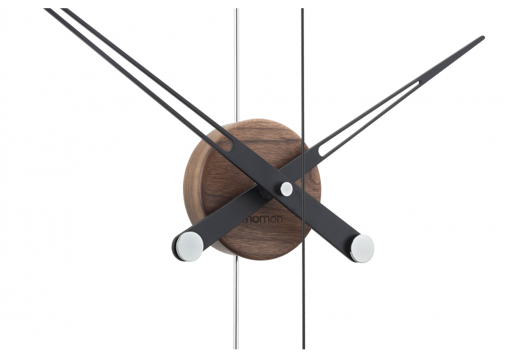 Barcelona, entworfen und hergestellt von Nomon, ist eine Uhr mit schwarzer Glasfaserstruktur und schwarz lackierten Walnusszeigern.