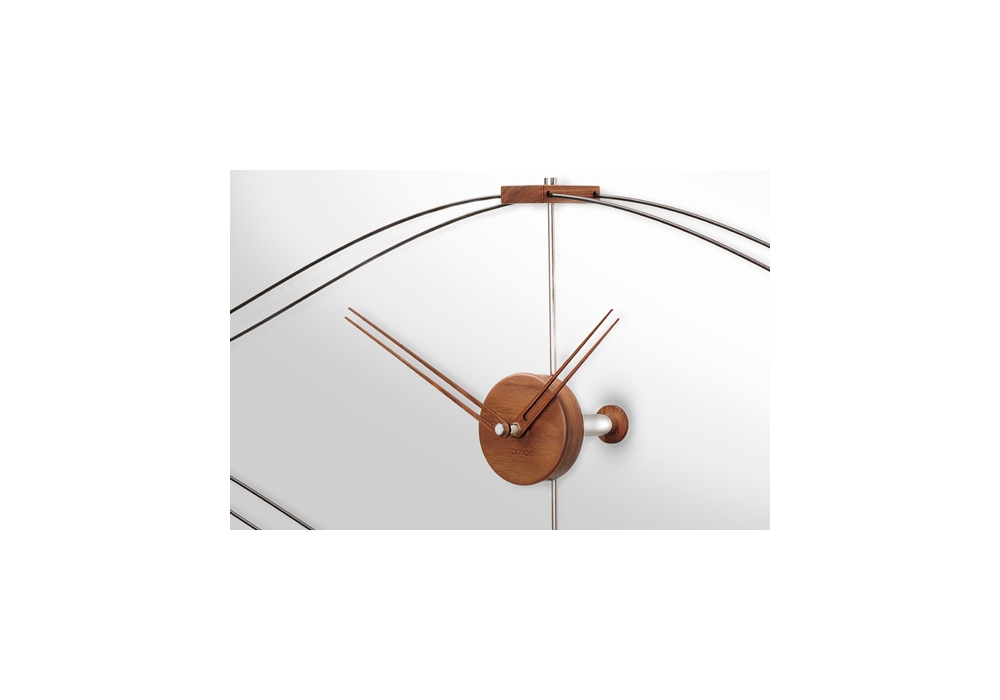 Look, entworfen und hergestellt von Nomon, ist eine Uhr mit schwarzer Glasfaserstruktur, Zeigern und zentralem Gehäuse aus natürlichem Nussbaum.