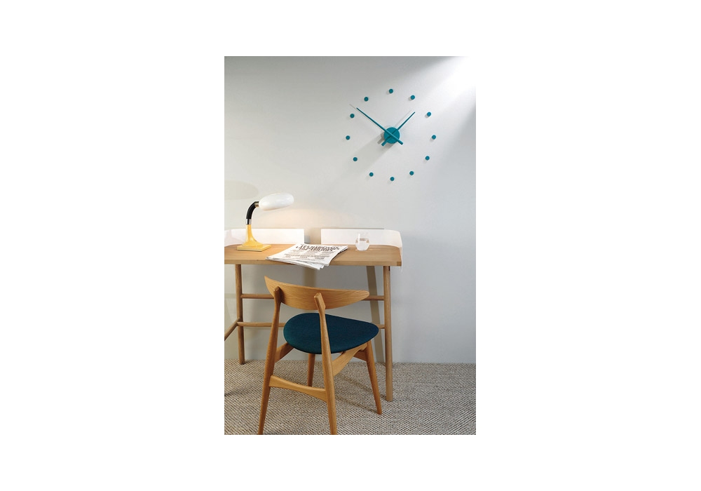 Oj Mini, entworfen und hergestellt von Nomon, ist eine Wanduhr mit 12 Zeitsignalen, Styroporgehäuse und Zeigern, die in verschiedenen Farben erhältlich sind.