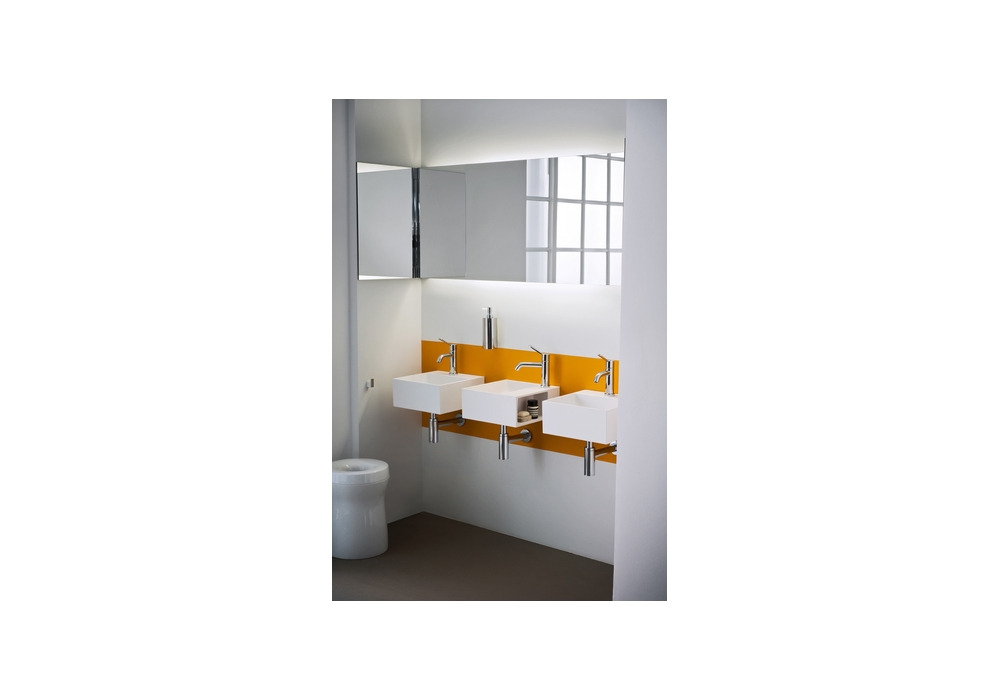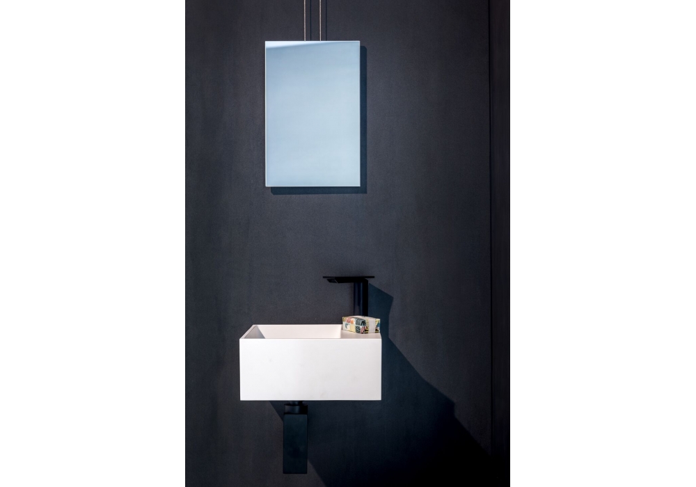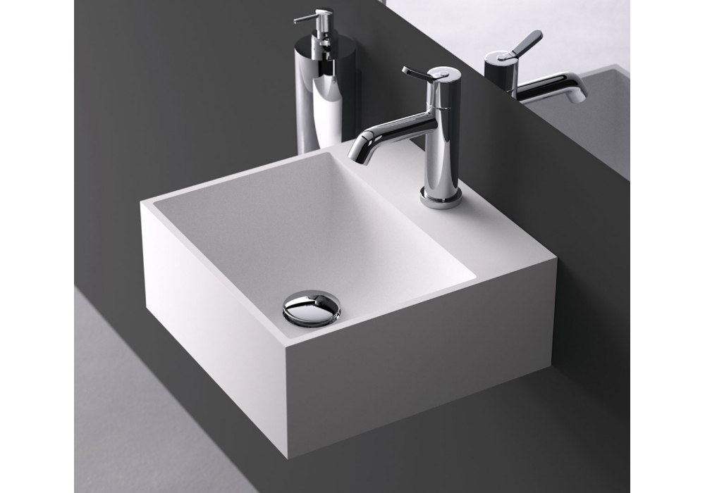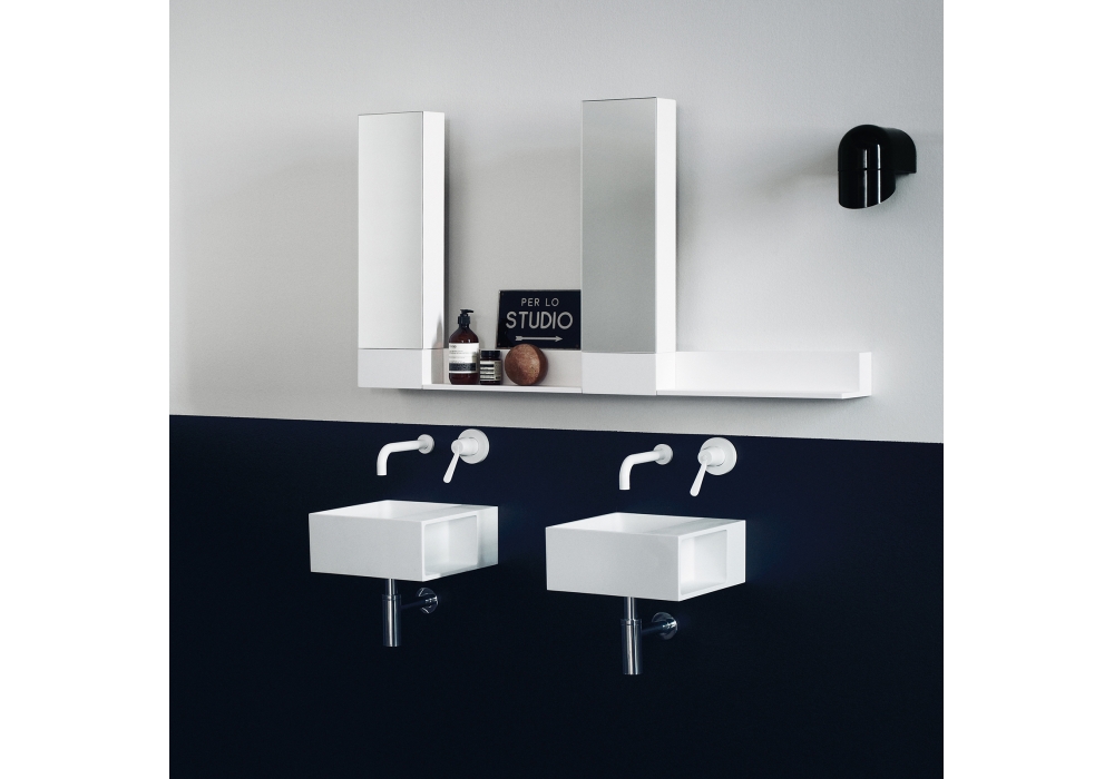 Handwash, von Benedini Associati für Agape entworfen, ist ein Quadratisches Waschbecken aus weißem Cristalplant® biobased, mit oder ohne Armaturenloch, ohne Überlauf, inklusive Befestigungskit. Auch mit seitlichem Ablagefach lieferbar. Verwendet das Ablaufventil.