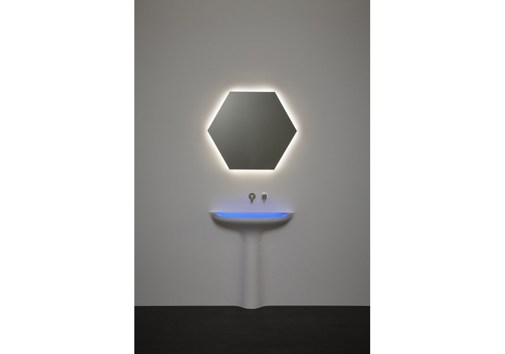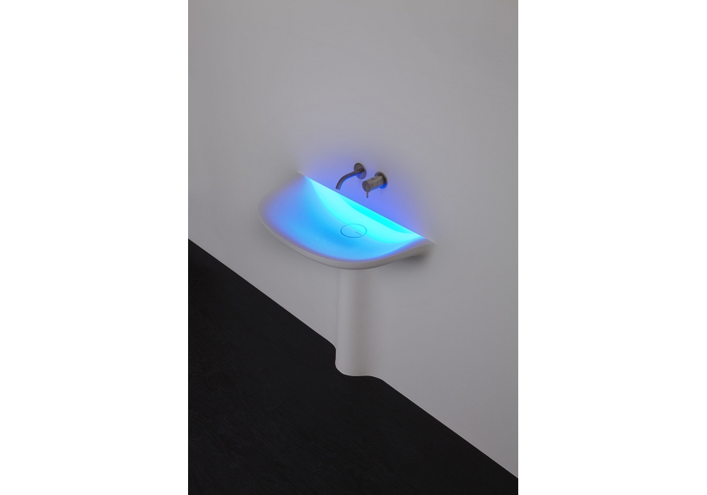 Calice von Domenico De Palo und Mario Ferrarini für Antonio Lupi entworfen, ist ein Wandwaschbecken in Moodlight, mit oder ohne LED-Beleuchtung, komplett mit inspizierbarem Abfluss, Siphon, flexiblem Schlauch und, in der LED-Version, inklusive Transformator.