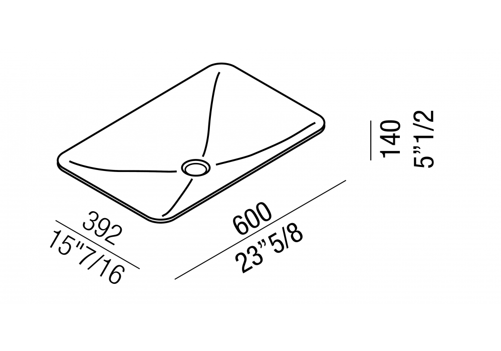 Ottocento 001 von Benedini Associati für Agape entworfen, ist ein integriertes Waschbecken aus weißem Cristalplant® biobased. Es gibt kein Hahnloch, frei fließendes Wasser. Verwendet einen Ablauf.