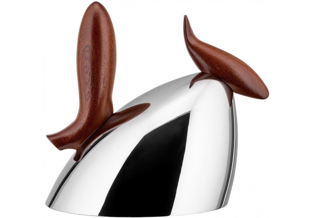 Pito, von Frank Gehry für Alessi entworfen, ist ein Wasserkessel aus Edelstahl 18/10. Griff und Kappe mit melodischer Pfeife aus Mahagoniholz.