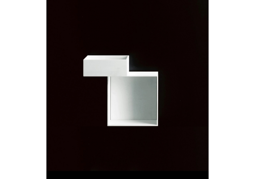Skyline, von Neunzig° für Boffi entworfen, ist eine Sammlung von Schränken aus weißem Corian®. Erhältlich in der hängenden Version mit 2 oder 3 Fächern oder in der freistehenden Variante mit 3 Fächern.