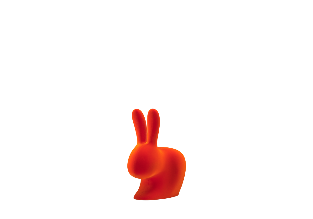 Rabbit XS designed by Stefano Giovannoni for Qeeboo is a bookend made of polyethylene with a velvet covering.
