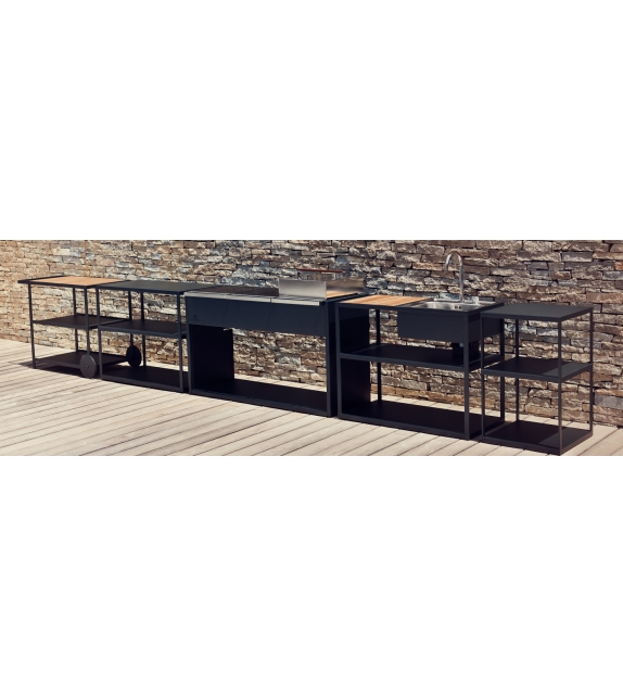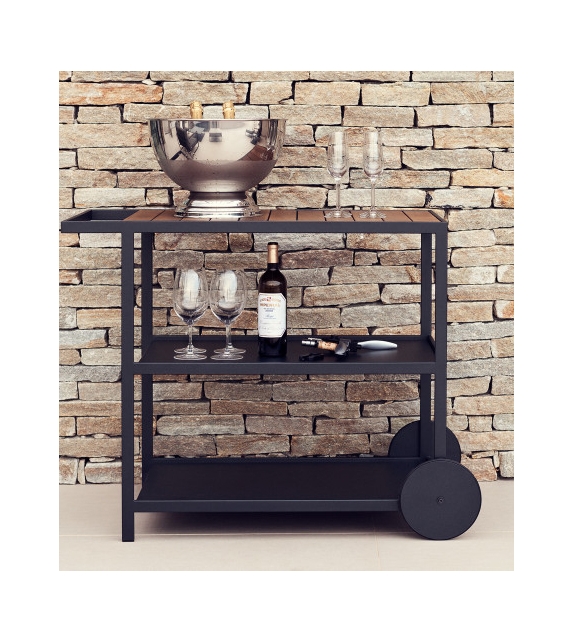 Garden designed by Broberg & Ridderstråle for Röshults is a trolley with structure in stainless steel and top in teak.