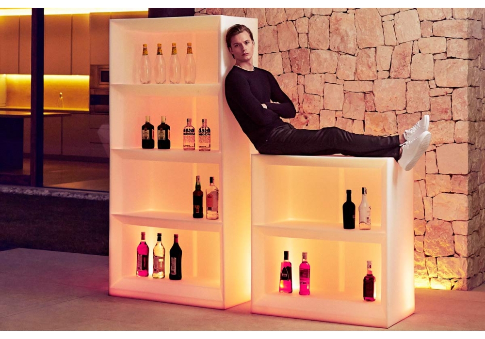 Vela designed by Ramón Esteve for Vondom is a shelf made of polyethylene resin with a matt or lacquered finish or with internal LED lighting. Available in different finishes and dimensions.