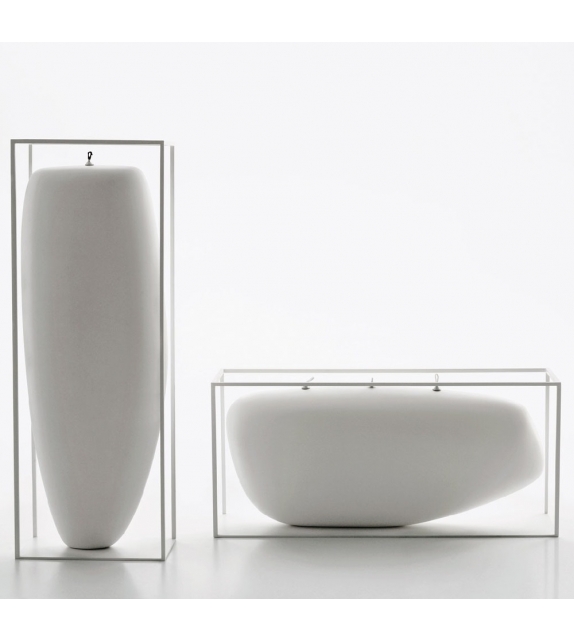 Overscale Flames designed by Jean-Marie Massaud for B&B Italia Outdoor is an oil candle with a body in white high-density polyurethane resin (Baydur®). Matt white painted metal structure. Available in two dimensions.
