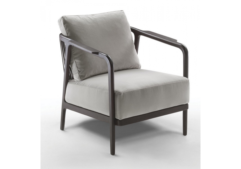 Crono designed by Antonio Citterio for Flexform is an armchair made of solid wood, seat in woven leather cord, in wood and metal with expanded polyurethane, padding covered in protective coupled fabric, back cushion in feather, removable upholstery in fabric or leather.