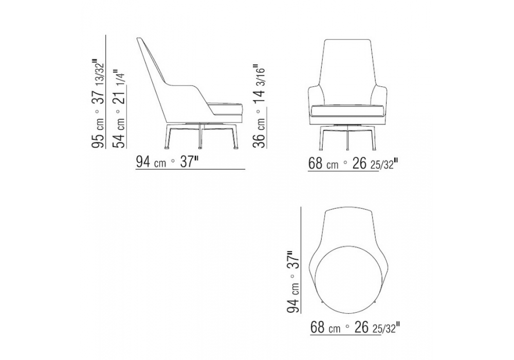 Guscioalto Soft is a turning metal base armchair designed by Antonio Citterio for Flexform. Frame in rigid polyurethane and dacron. Base in metal. Seat cushion down-filled with resilient inner core. Upholstery fabric or leather covers.
