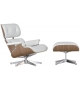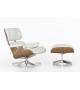 Vitra Lounge Chair & Ottoman: The Lounge Chair is one of the most famous designs by Charles and Ray Eames. Created in 1956 it is now a classic in the history of modern furniture. Since 1956, the Eames Lounge Chair has combined ultimate comfort with both materials and workmanship of the highest quality. In the tradition of the English club chair, which inspired this classic design by Charles and Ray Eames, the original appearance of the Lounge Chair was defined by a dark wood veneer and black leather. However, the Eameses also created an early version with light-coloured leather upholstery. Developed in cooperation with the Eames Office, Vitra now introduces a new interpretation of the Lounge Chair. With white leather, polished aluminium and walnut veneer in a light finish, the new version harmonises perfectly with light-coloured interiors.