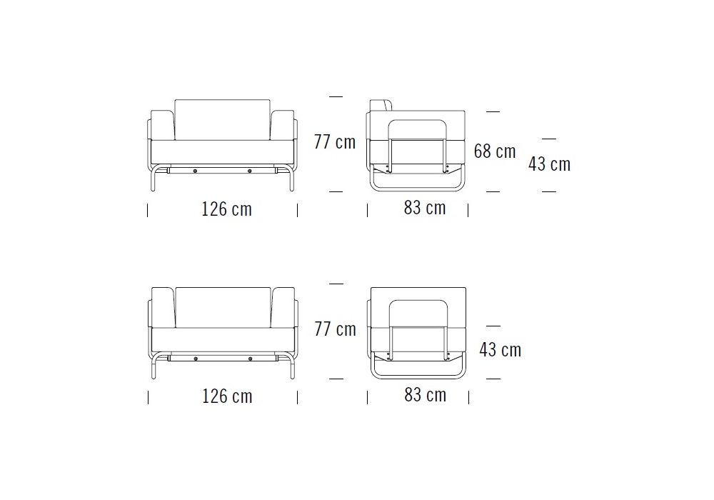 S 5001 designed by James Irvine for Thonet is an armchair with chromed or black tubular steel frame. Seat and back with comfortable padding, upholstery in fabric, leather or hide. The sofa is available in two versions.