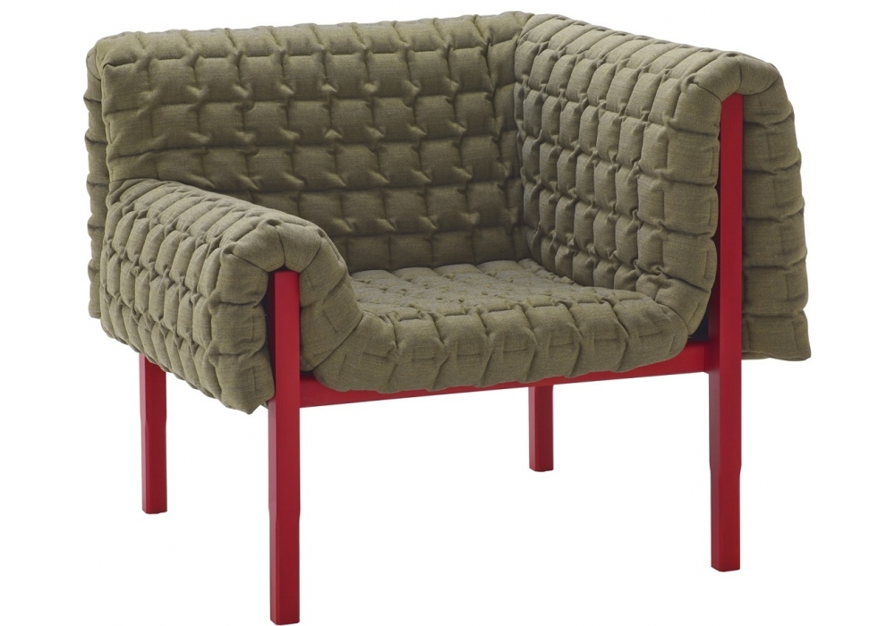 For Ligne Roset, Ruché (the name refers to a gathered or pleated fabric which serves as a decoration on a piece of clothing) designed by Inga Sempé brings together the unusual and the traditional. The unusual thing about this piece is its solid wood structure, and the great traditional element: the quilting, the very heart of its savoir-faire. Its rangy uprights and the undulations of its duvet combine to produce a harmonious union of rigorous straight lines and soft, welcoming curves. Slender and fine, Ruché is nonetheless soft and welcoming.