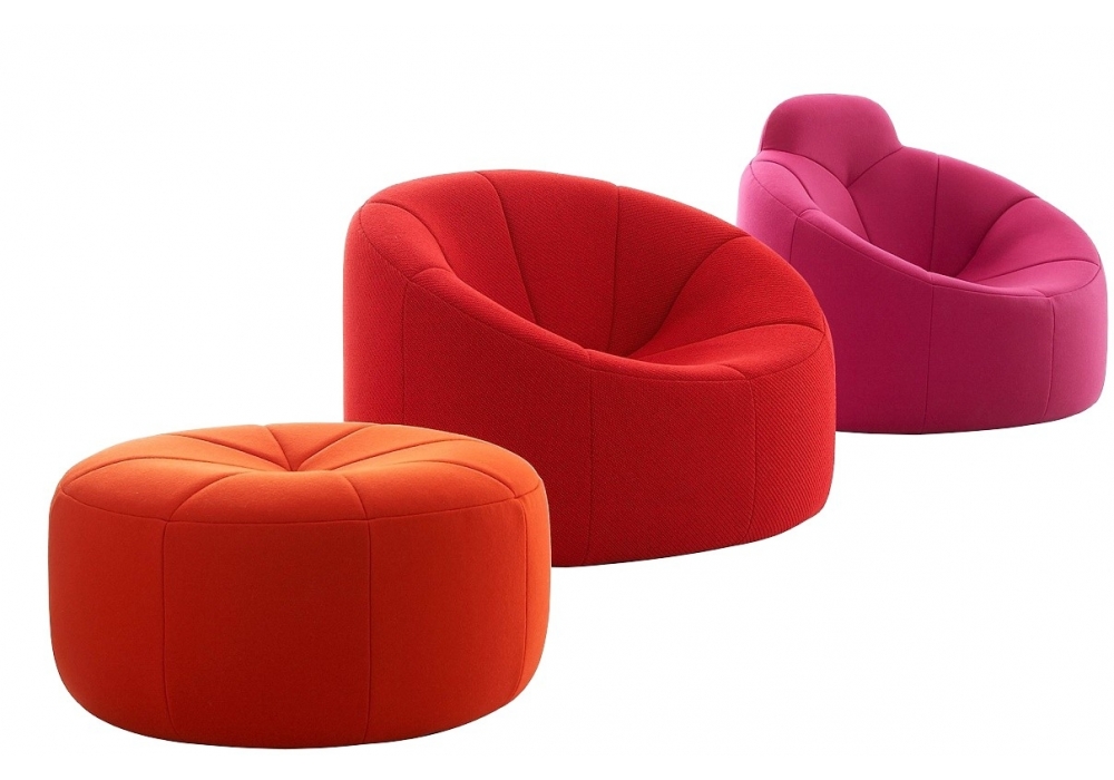 Pumpkin designed by Pierre Paulin for Ligne Roset is a collection of upholstered products. For the very first time, Pierre Paulin's 1971 design for seating for the private apartments of Claude & Georges Pompidou at the Elysée Palace is being put into large-scale production. Pumpkin is characteristic of Paulin's revolutionary style, as initiated at the end of the 1950's, and as its name suggests is evocative of a giant pumpkin, welcoming the user with its protectively voluptuous - and voluptuously protective - shell. Resisting its appeal is an impossibility!