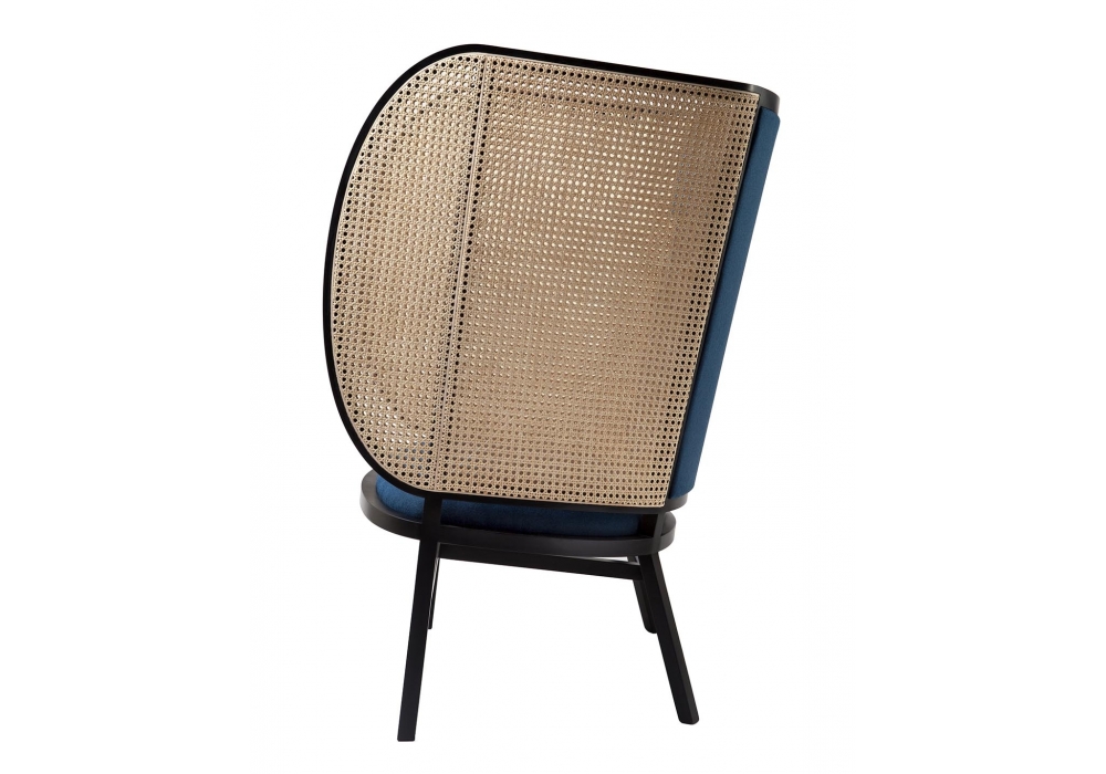 Hideout designed by Front for Gebrüder Thonet Vienna is a lounge armchair made of bent beech. Seat and back upholstered in polyurethane foam with fabric or leather upholstery in different finishes, side elements in Vienna straw.
