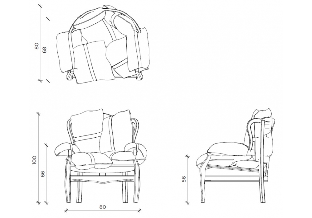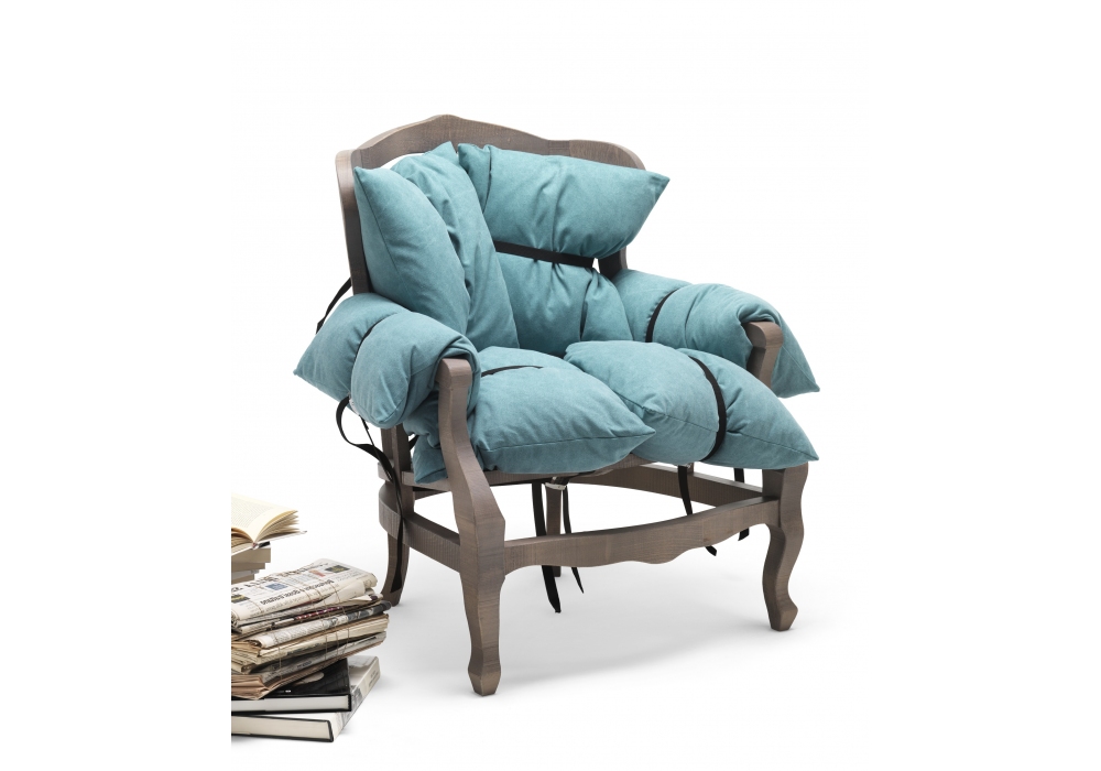 7Pillows designed by Marcantonio for Mogg is an armchair made of solid beech, available with brown or black colored structure. Complete with 7 down cushions with removable upholstery.