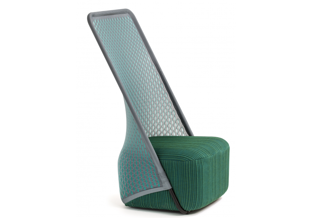 Cradle designed by Benjamin Hubert for Moroso is an armchair with shell in varnished steel. Seat in fabric upholstery.