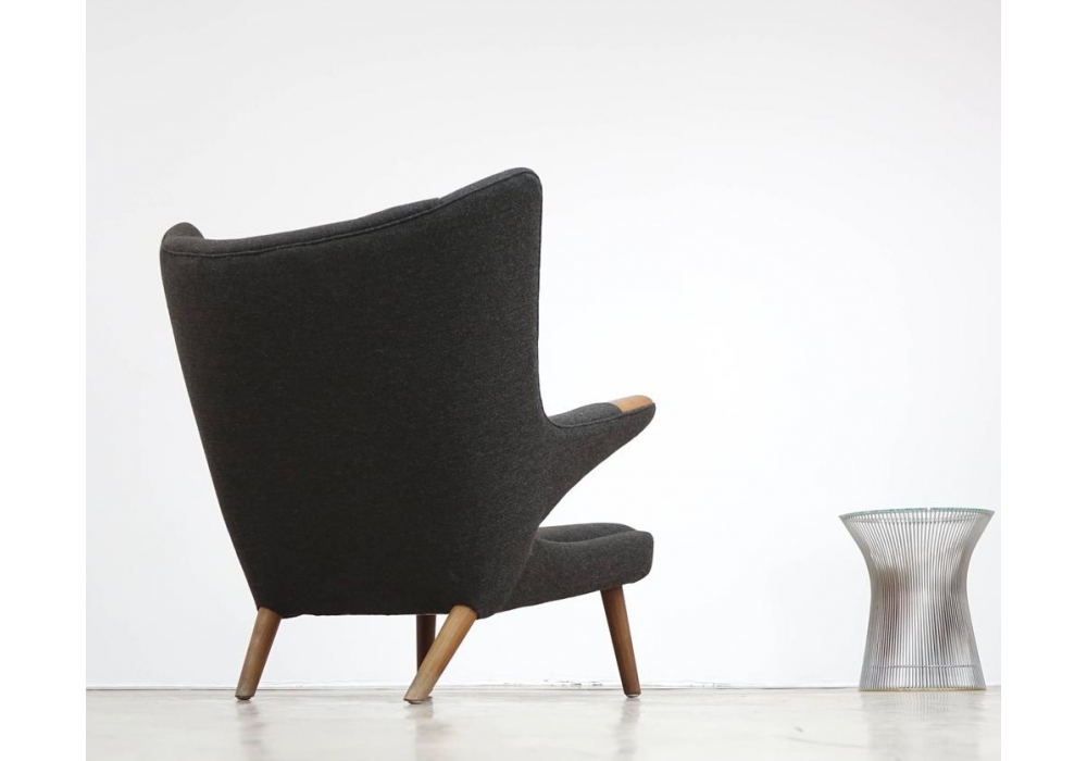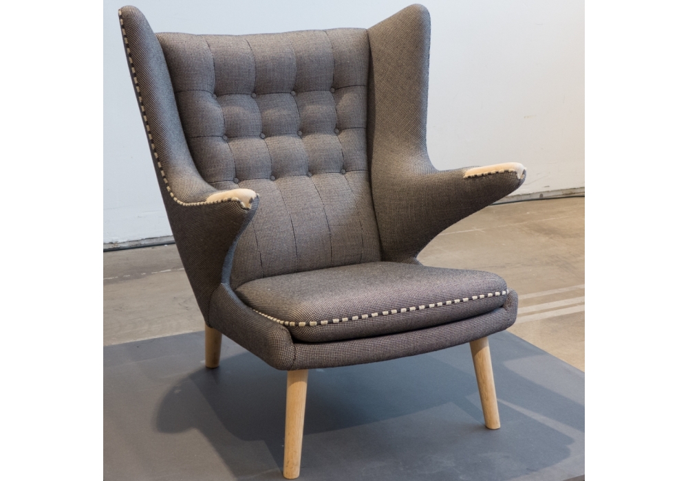 PP19 Papa Bear Chair designed by Hans J. Wegner for PP Møbler is an easy chair with wooden legs available in different finishes and upholstery in fabric or leather. The piping and buttons can be customized with leather or fabric.