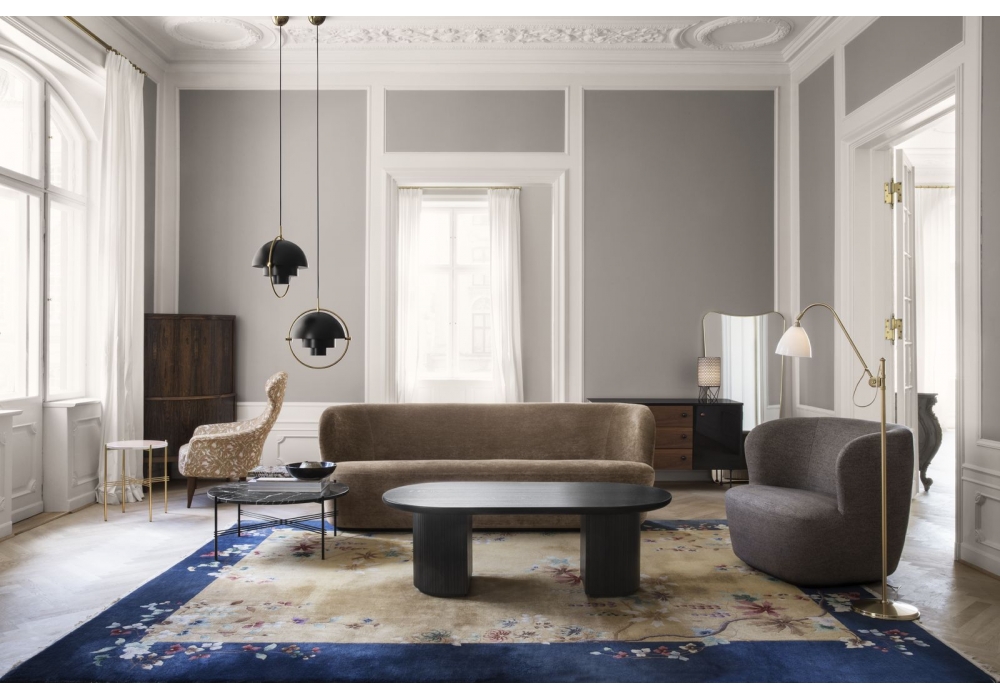 Stay Lounge designed by Space Copenhagen for Gubi is an armchair made with a solid wood frame covered with polyurethane foam and upholstery in fabric or leather. Available in different dimensions.