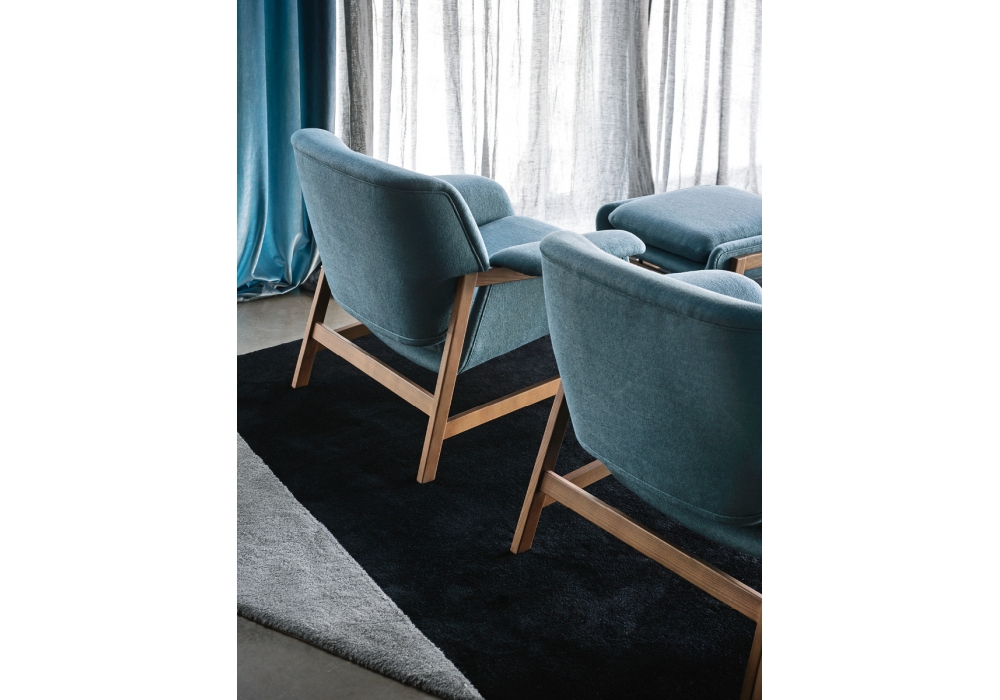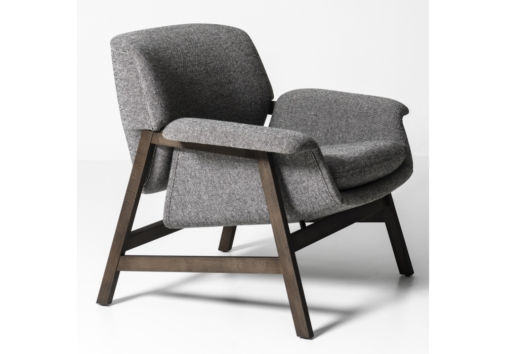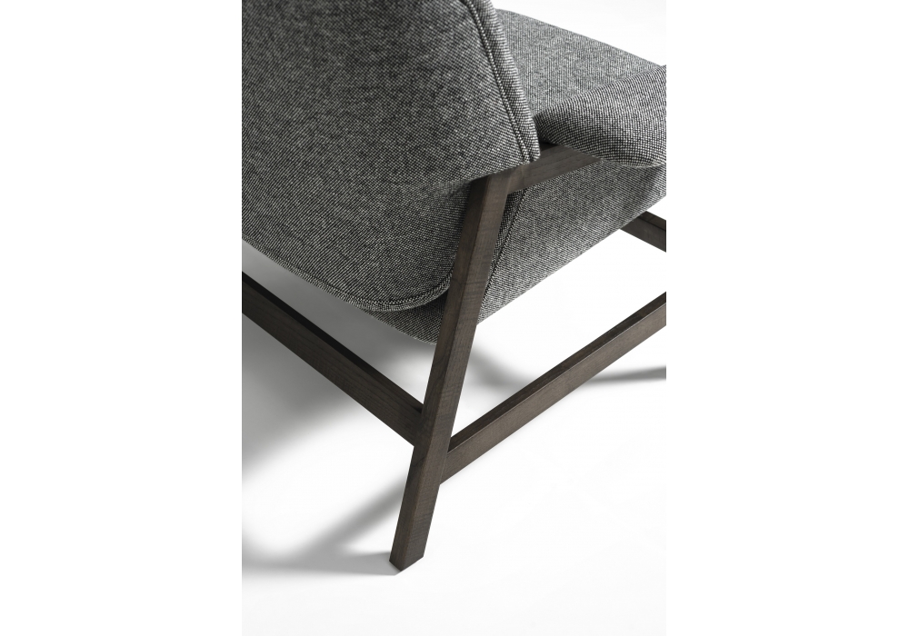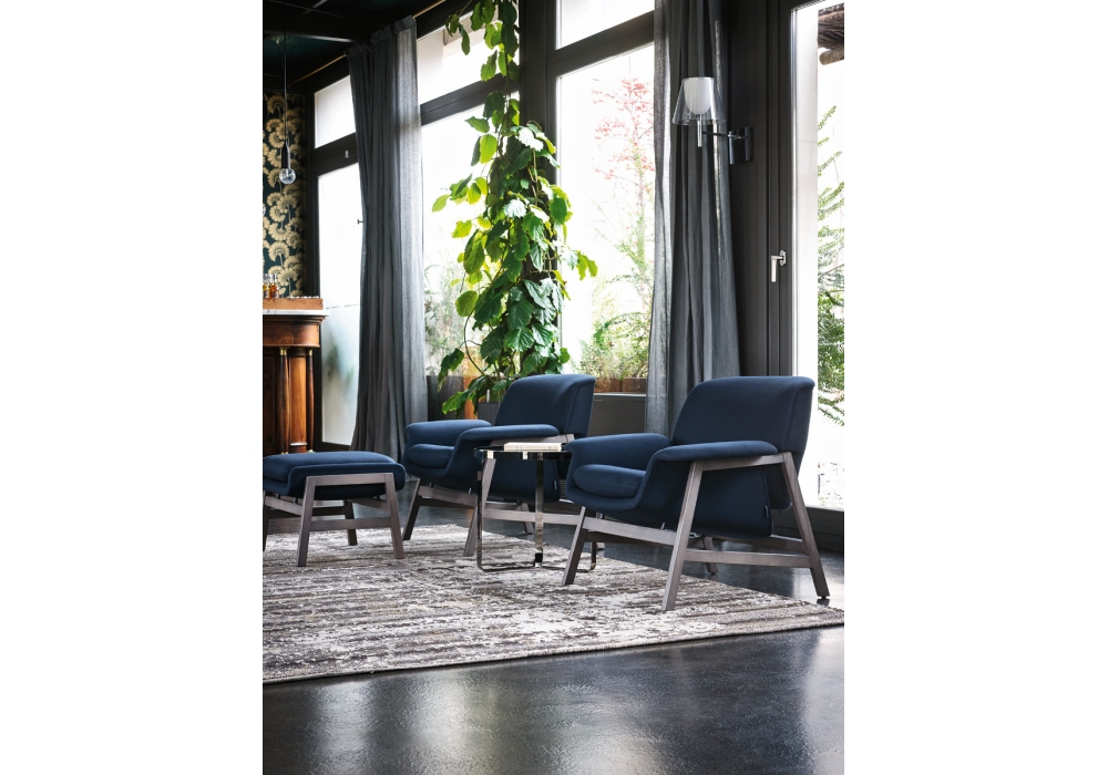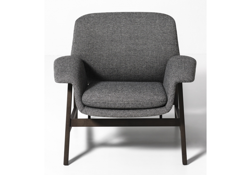 Agnese designed by Gianfranco Frattini for Tacchini is an armchair with structure in solid wood stained in walnut or gray. The non-removable upholstery is available in fabric or leather in different colors.