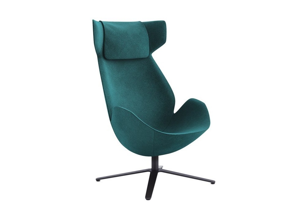 Shelter designed by Noé Duchaufour-Lawrance for Tacchini is an armchair with cold-foamed internal structure with metal inserts. The interior of the headrest is in polyurethane foam including a metal plate. The base is in swivel metal, with 4 epoxy powder coated spokes or chromed.