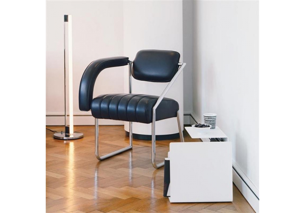 Non Conformist designed by Eileen Gray for ClassiCon is a beautiful armchair with frame of chromium-plated steel tubing. Seat has a beech frame with rubber webbing. Upholstery: polyurethane with quilting cotton. Cover in fabric or leather.