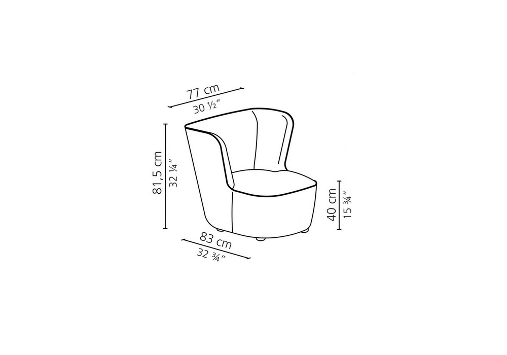 Baby Royale designed by Castello Lagravinese Studio for Casamilano is an armchair with solid fir structure, padding in differentiated density polyurethane foam and removable (fabric) or fixed (leather) cover.