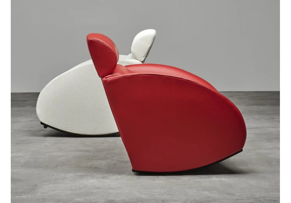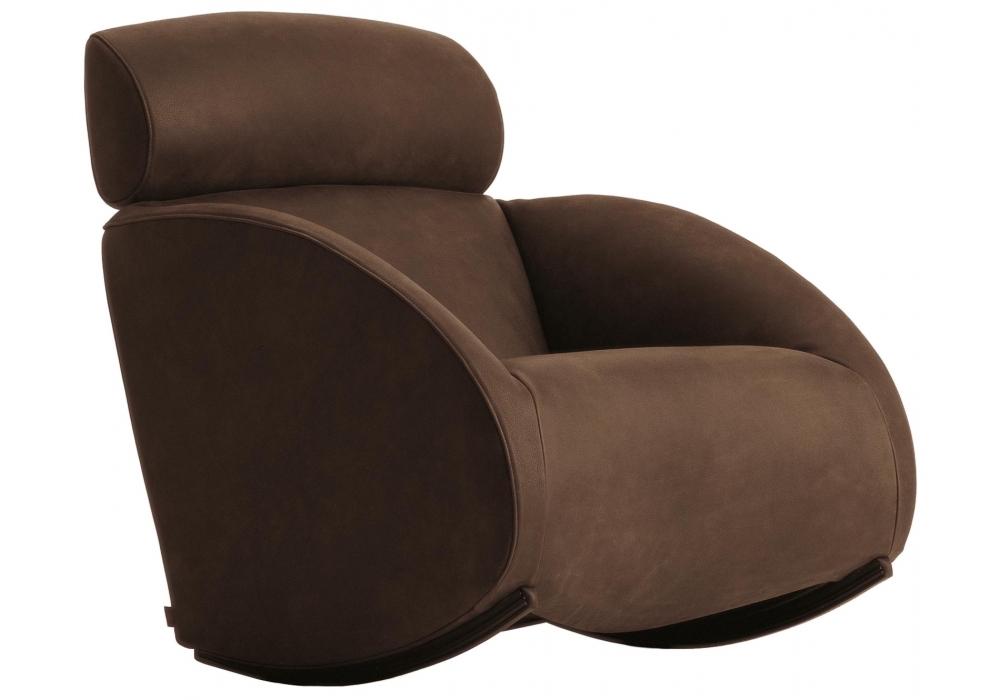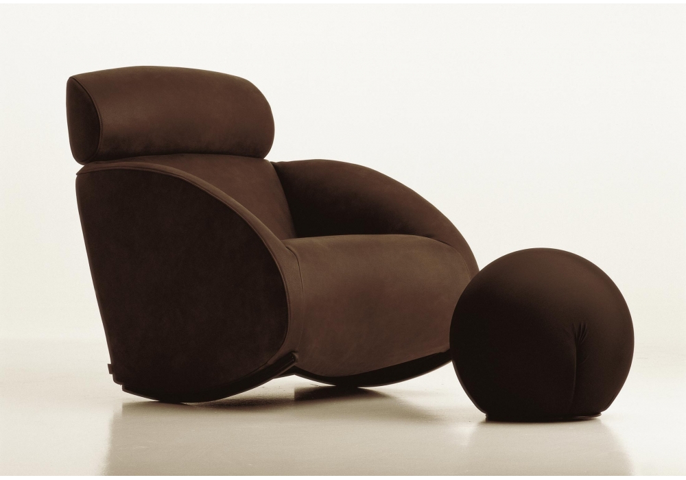 Mama designed by Denis Santachiara for Baleri Italia is a beautiful rocking armchair with adjustable headrest. Internal structure in steel tubing. Filler in flexible polyurethane, cold-processed without CFC. Available in fabric or leather.