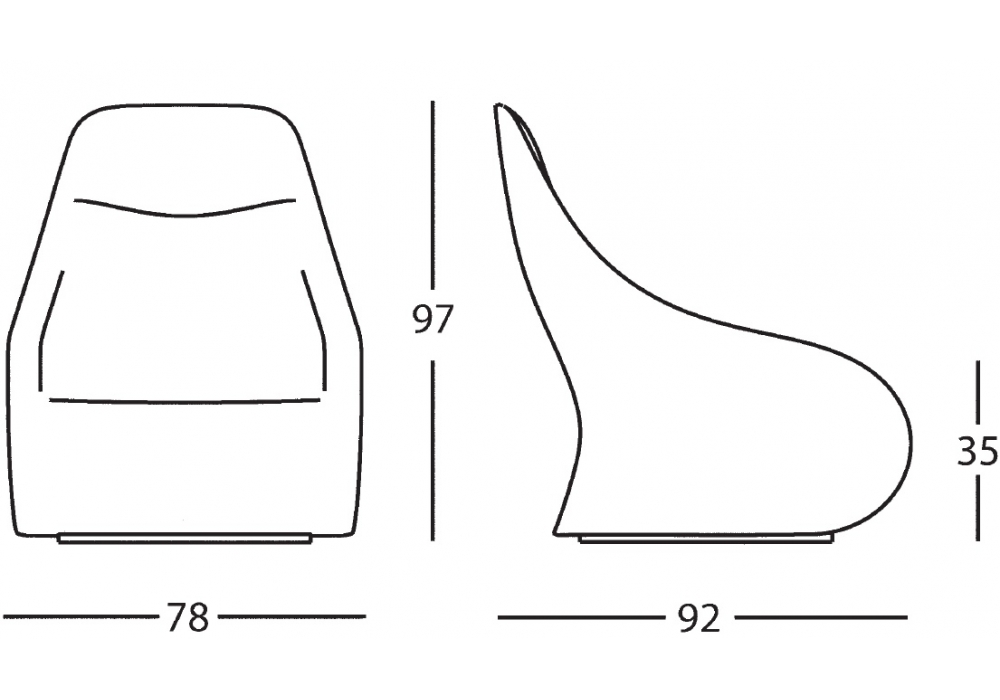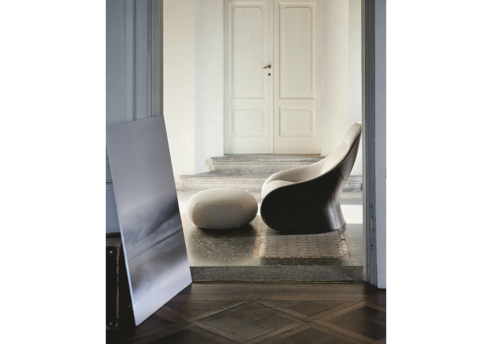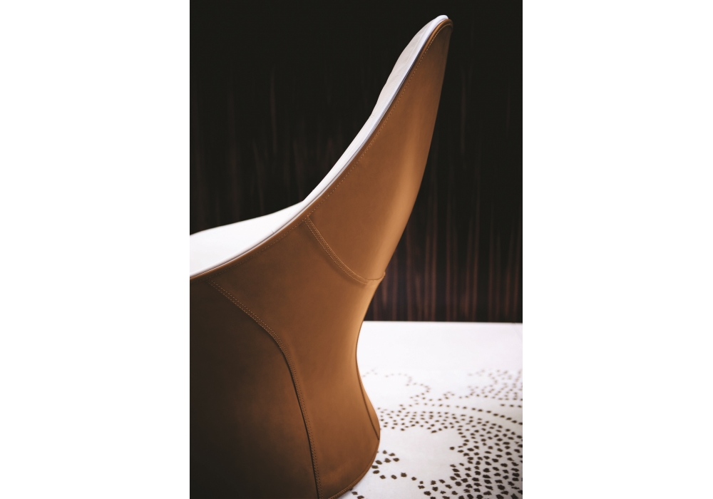 875 Derby designed by Noé Duchaufour Lawrance for Zanotta is an armchair with stiff polyurethane external body covered made of cowhide 95 and upholstery of internal body in polyurethane/ heat-bound polyester fibre with elastic strips suspension. Steel base, swivel or fixed with feet. Removable fabric or leather cover.