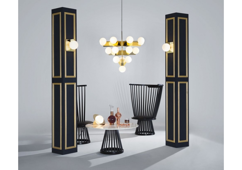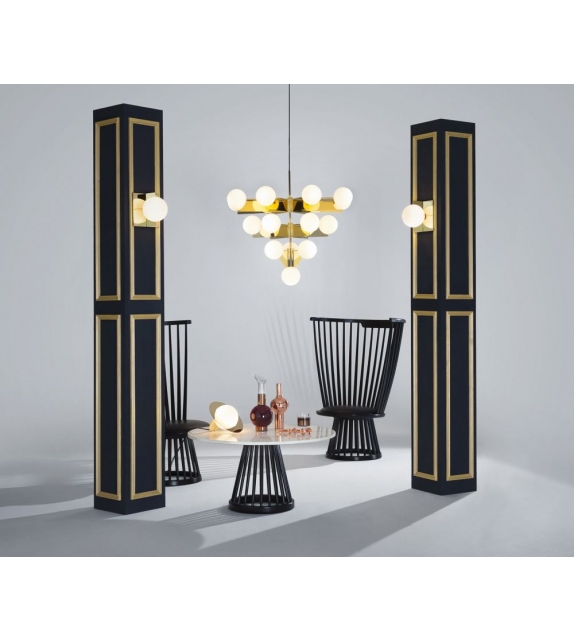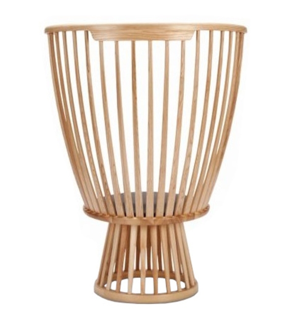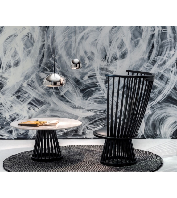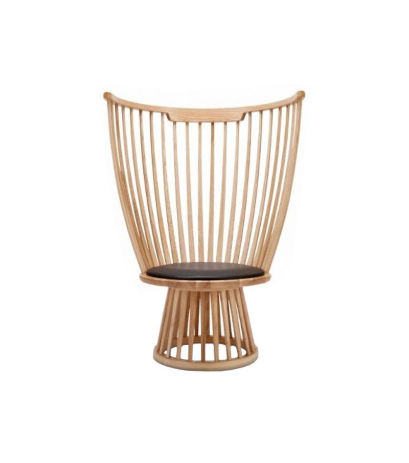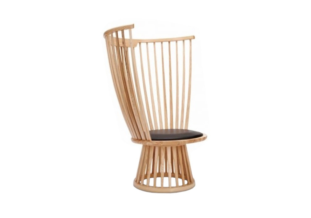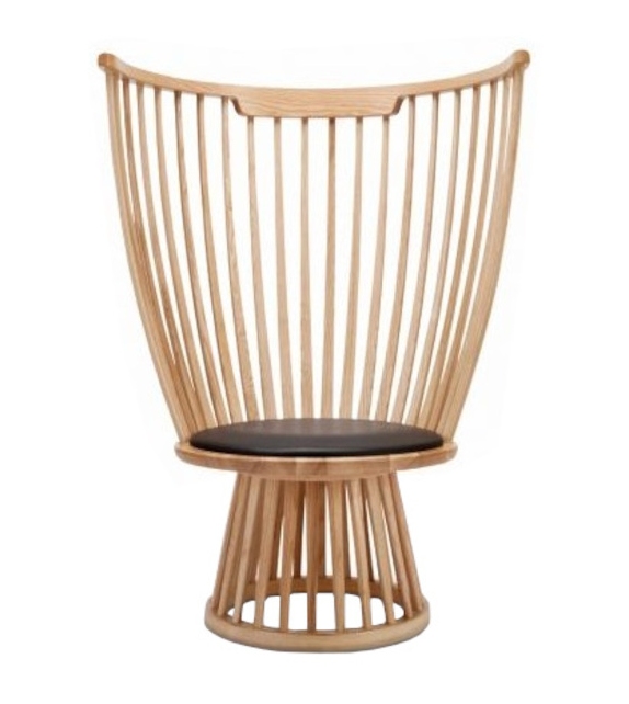 Fan Lounge Chair designed by Tom Dixon is a lounge chair with a high backrest. Seat with cushion covered in black leather. Structure available in different finishes.