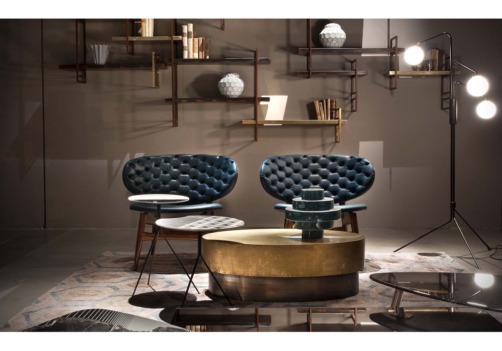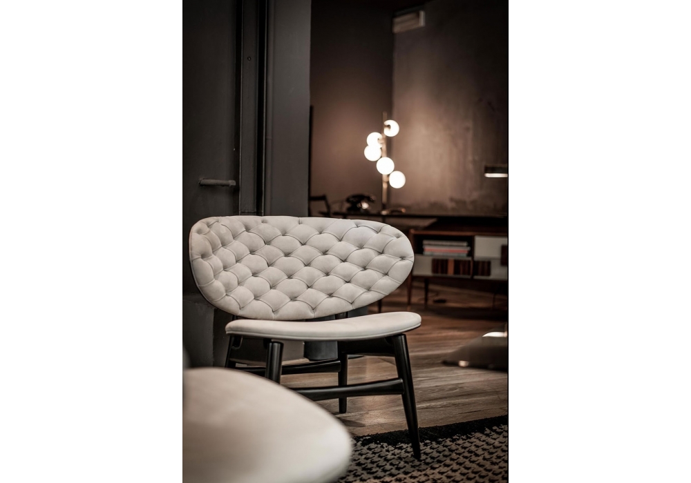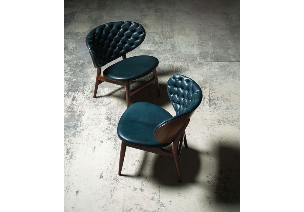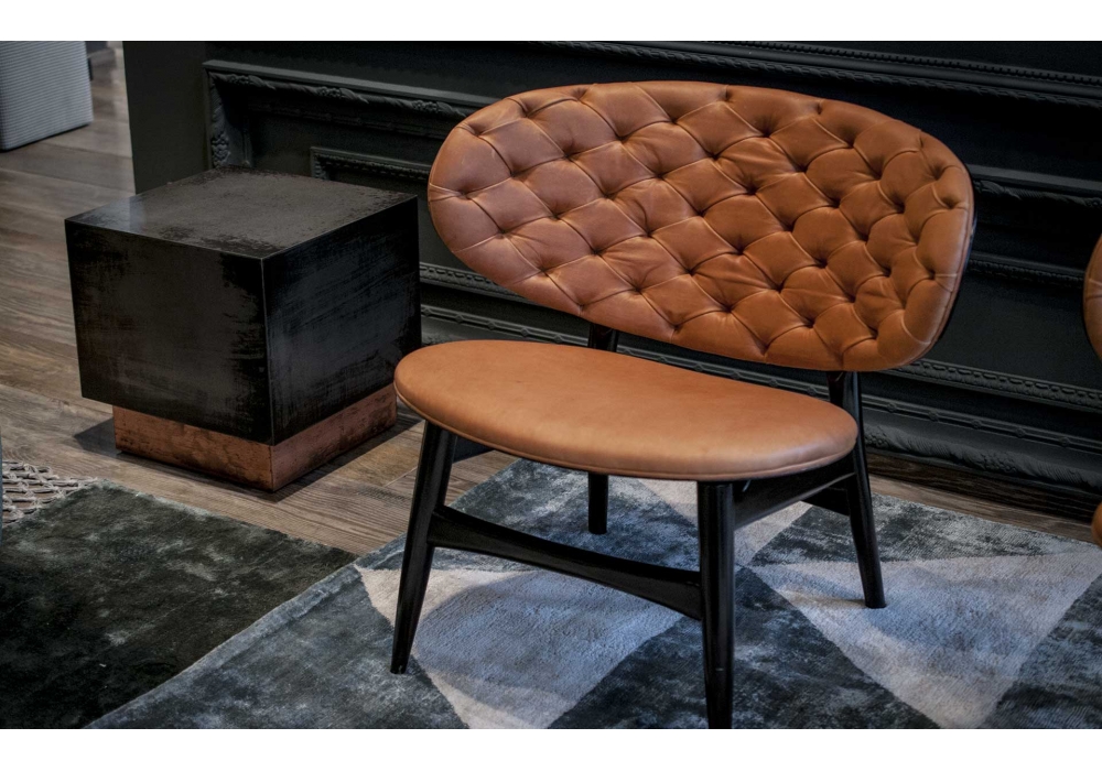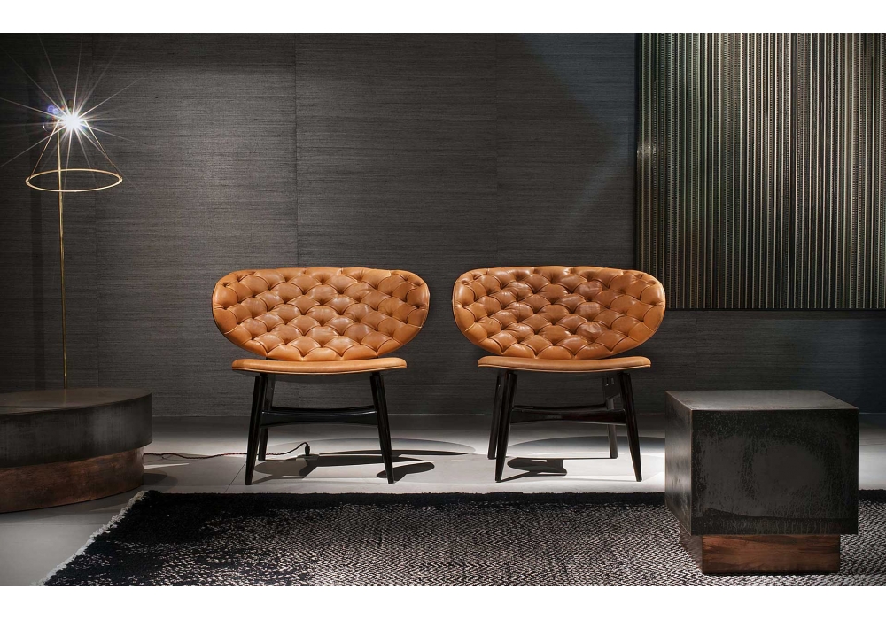 Dalma designed by Draga & Aurel for Baxter is an armchair with leather upholstery. Glossy black-stained beech or walnut frame. Seat and back in unique density polyurethane foam filling. Back realized in hand-made capitonné work. Available in all soft leathers.
