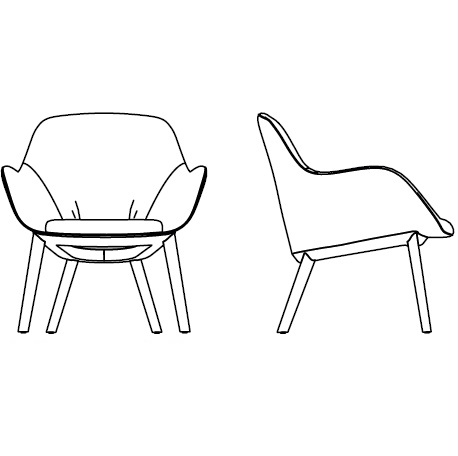 Sheru designed by Eoos for Walter Knoll is an armchair with four wooden legs in oak or walnut finish. Covering in fabric or leather. Available in several models.